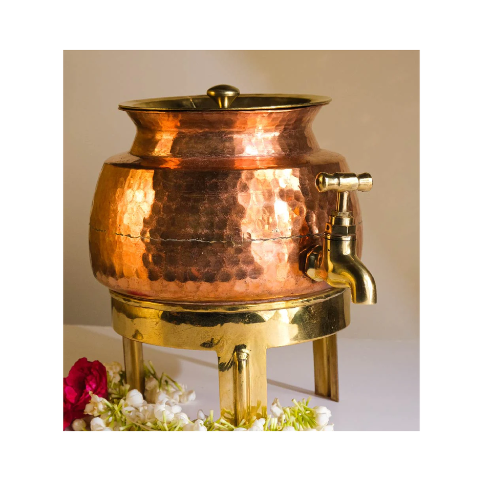 หม้อต้มน้ำทองแดงพร้อมขาตั้งขนาดกลางทำจากทองเหลือง