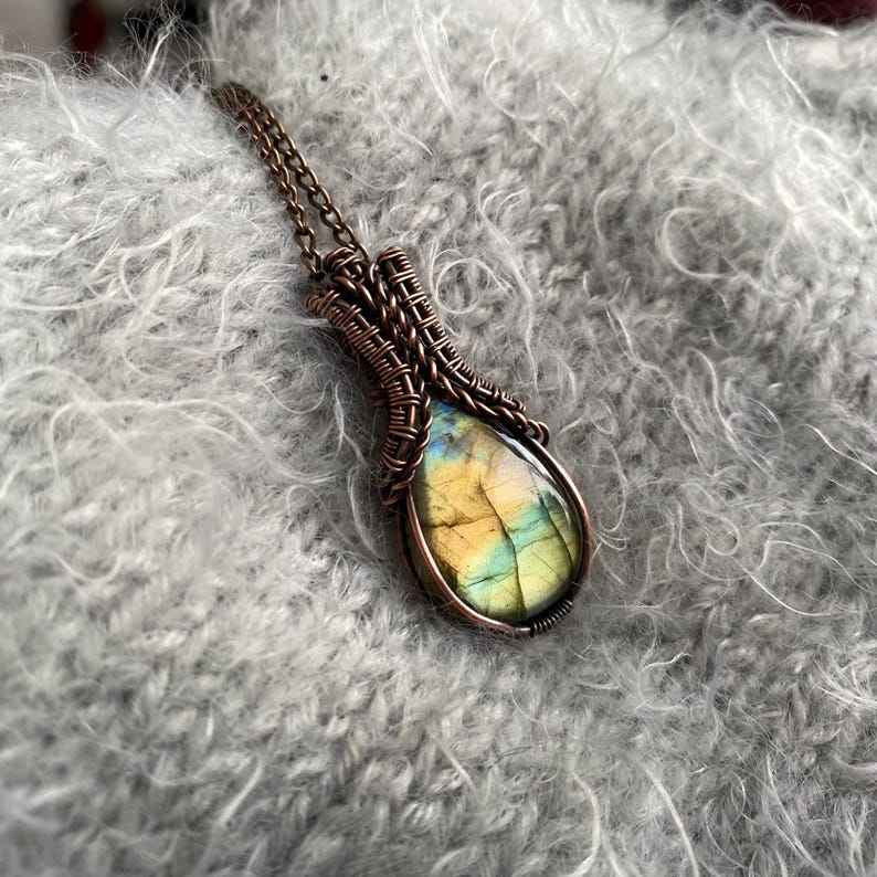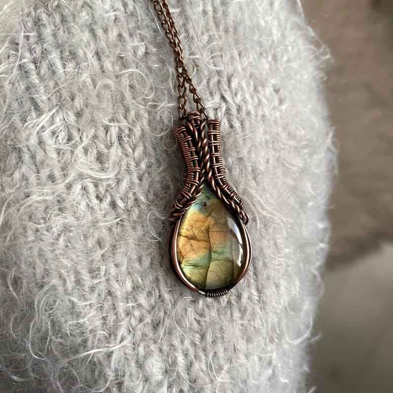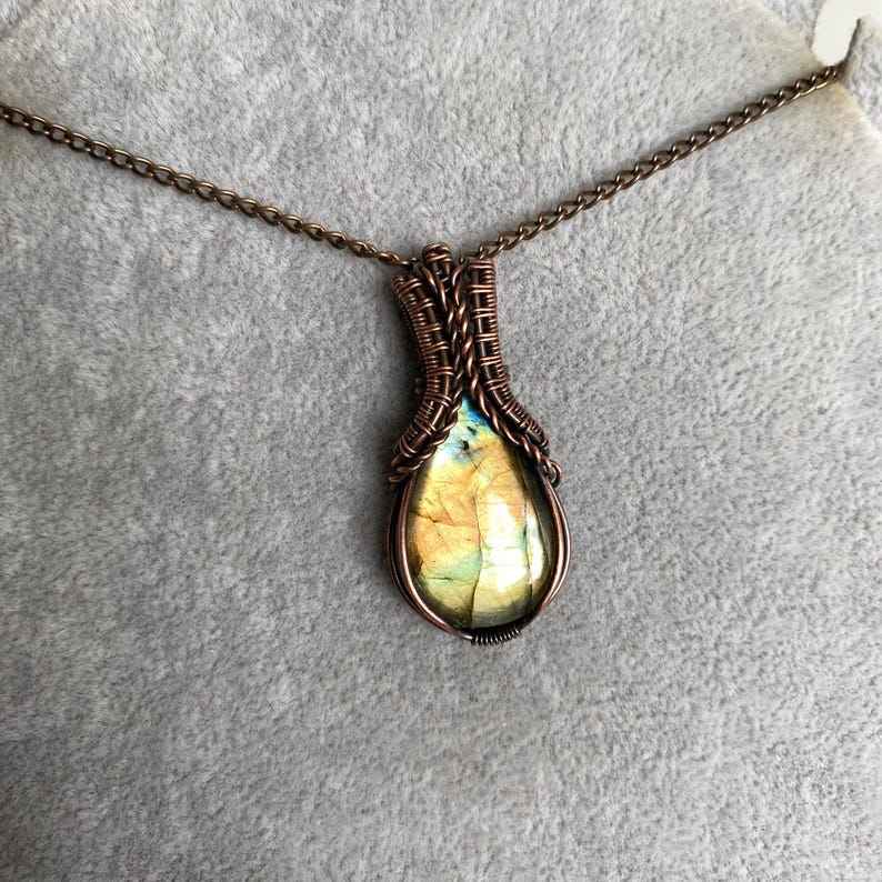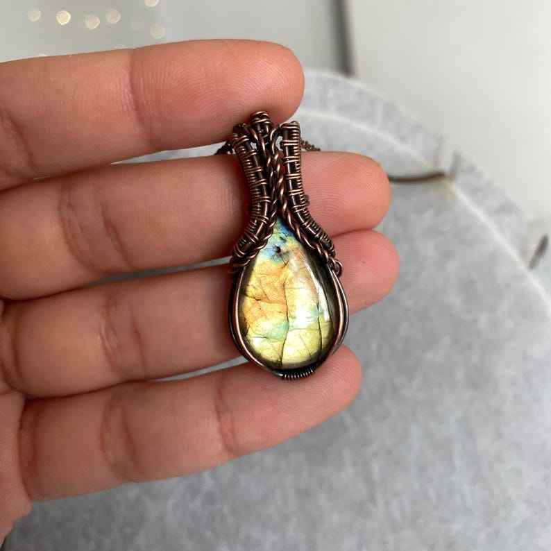 ทองแดงห่อจี้ลาบราดอไรต์สร้อยคอทำมือคริสตัลเครื่องประดับของขวัญสไตล์โบโฮสำหรับอัญมณีธรรมชาติของเธอ