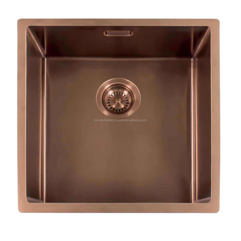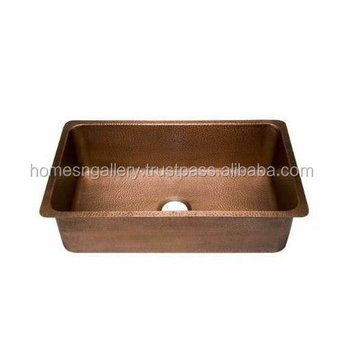อ่างล้างจานทองแดงในครัวดีไซน์หรูหราอ่างล้างหน้าทองเหลืองงานทำมือพร้อมชามเดี่ยวออกแบบด้วยการทุบทำโดยอินเดีย