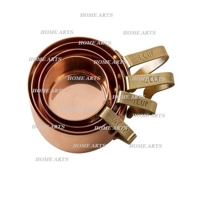 ถ้วยตวงทองแดงพร้อมด้ามทองเหลืองชุดถ้วยตวงขนาดแตกต่างกัน4แบบสำหรับการใช้งานในบ้านและโรงแรม