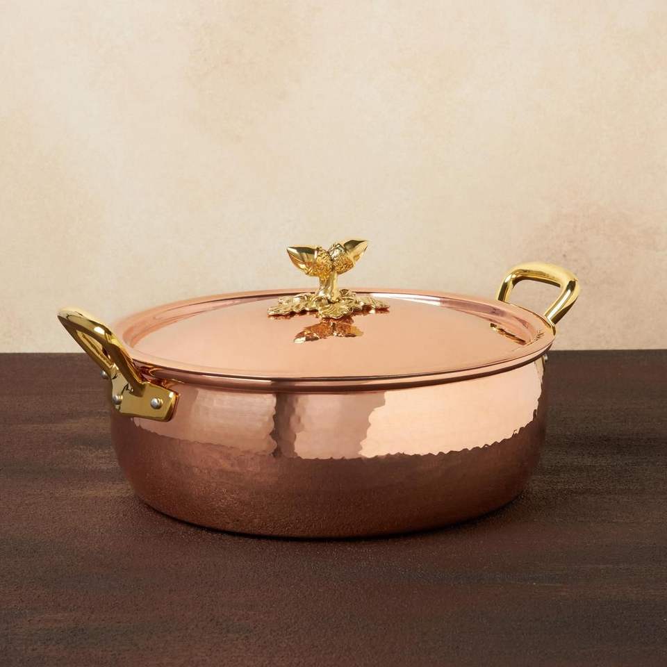 หม้อเสิร์ฟพร้อมที่จับทองเหลืองพร้อมฝาปิดสำหรับแกงกะหรี่ Biryani Dal ผักเสิร์ฟในโรงแรมร้านอาหารบ้าน