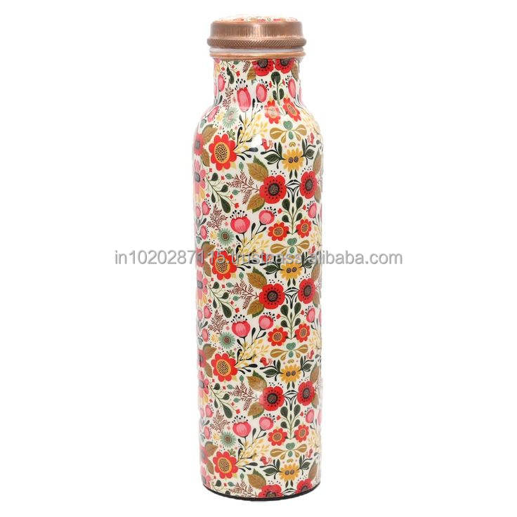 ขวดน้ำทองแดงทาสีมือลายดอกไม้เคลือบรายละเอียดที่สร้างขึ้นเพื่อการใช้ชีวิตที่มีสุขภาพดีและทางเลือกในการใช้ชีวิตที่หรูหรา