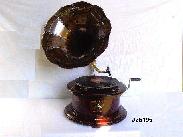 ทองแดงกับโบราณเสร็จฮอร์น Gramophone ที่มีฐานไม้รูปแบบอื่นๆที่มีการตกแต่งบ้าน