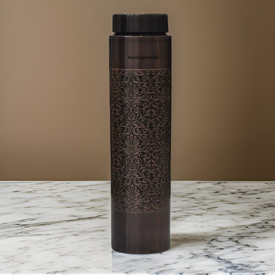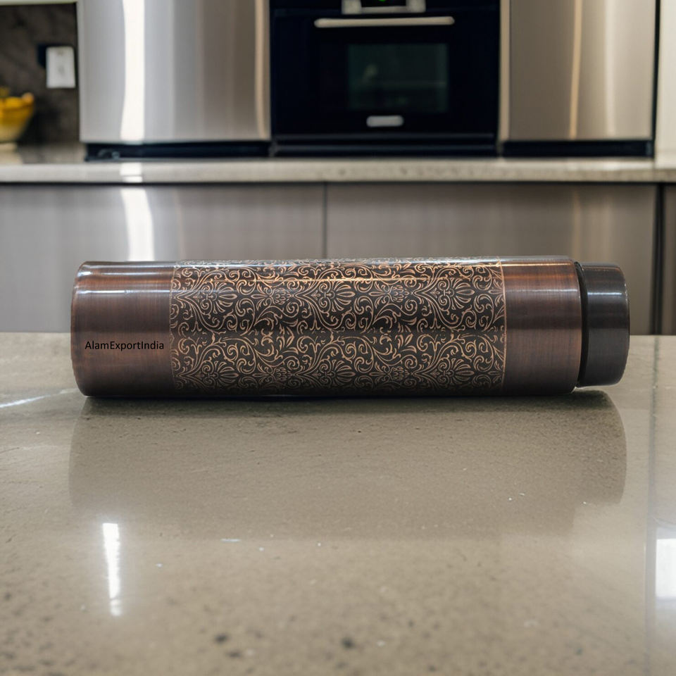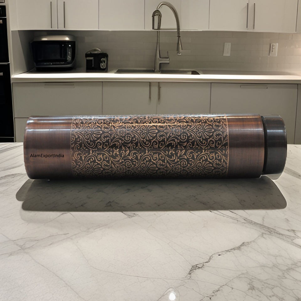 Copperware ขวดน้ำดื่มทองแดงบริสุทธิ์สลักลายโบราณแก้ว2ใบที่ยิมโรงเรียนโยคะ
