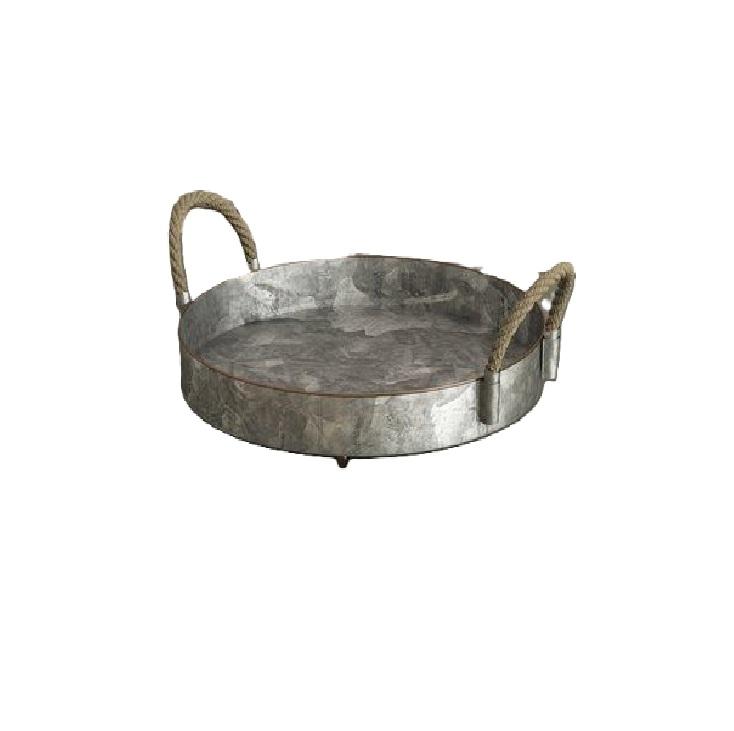 Coppetr ถาดเสิร์ฟอาหารทำจากโลหะชุบสังกะสีแบบกลมถาดเสิร์ฟอาหารแบบไม่มีที่จับสำหรับบ้านและโรงแรม