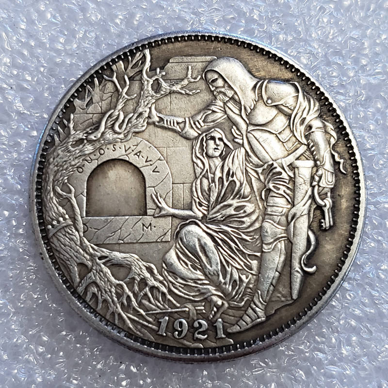 เหรียญจำลองดอลลาร์สหรัฐฯ โฮโบ มอร์แกน ลายจอกศักดิ์สิทธิ์ อัศวินเทมพลาร์ สงครามครูเสด ปี 1921 ทำจากทองเหลืองชุบเงิน สำหรับเป็นของที่ระลึก