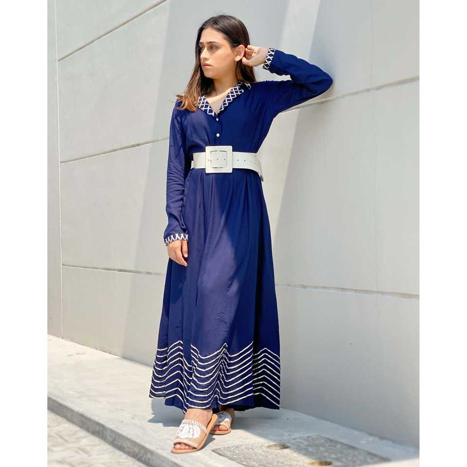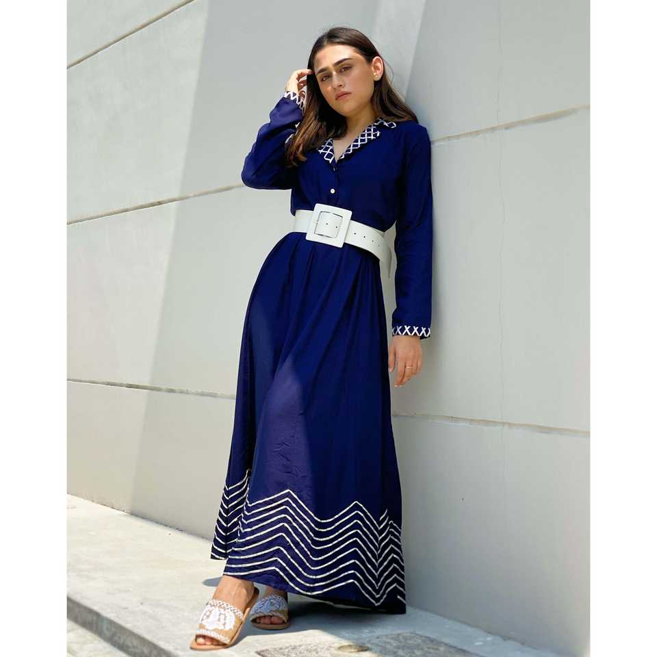 ชุดเดรสผ้าซาตินสีน้ำเงินคอรัลทรงเอไลน์ พร้อมดีไซน์เอวธรรมชาติ ชุดราตรียาวหรูหรา