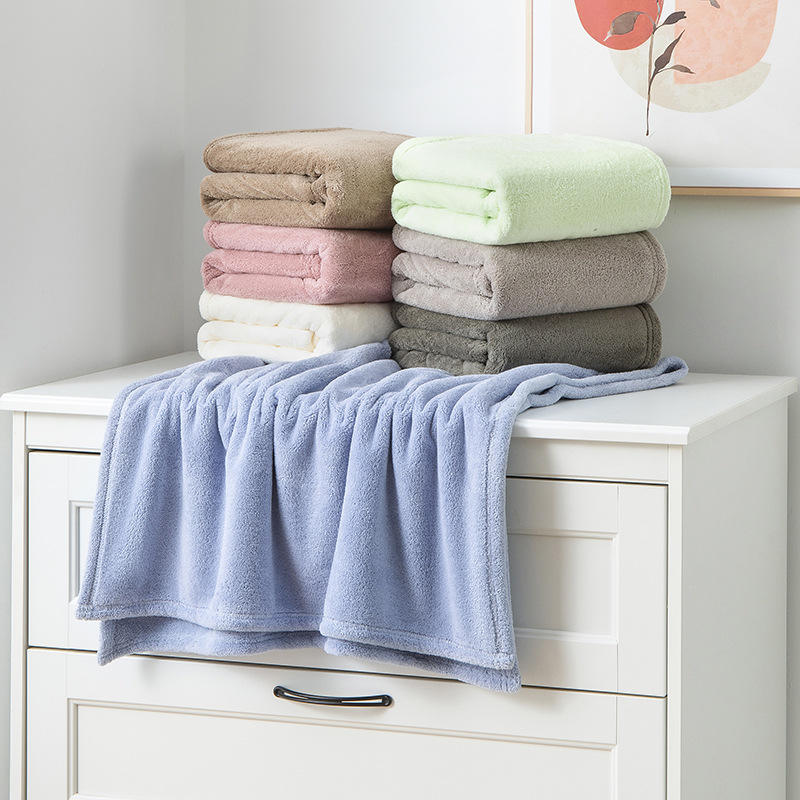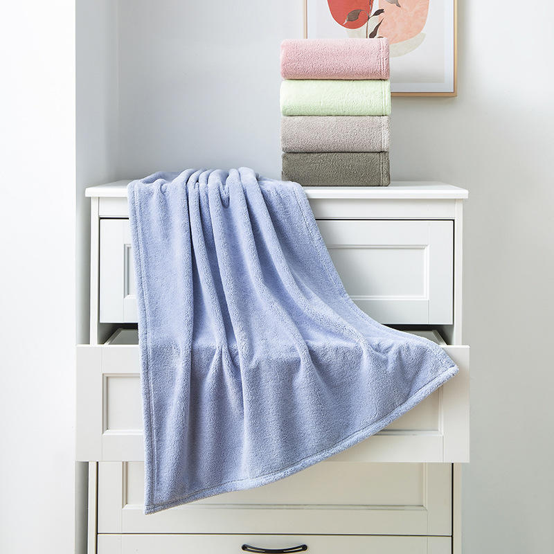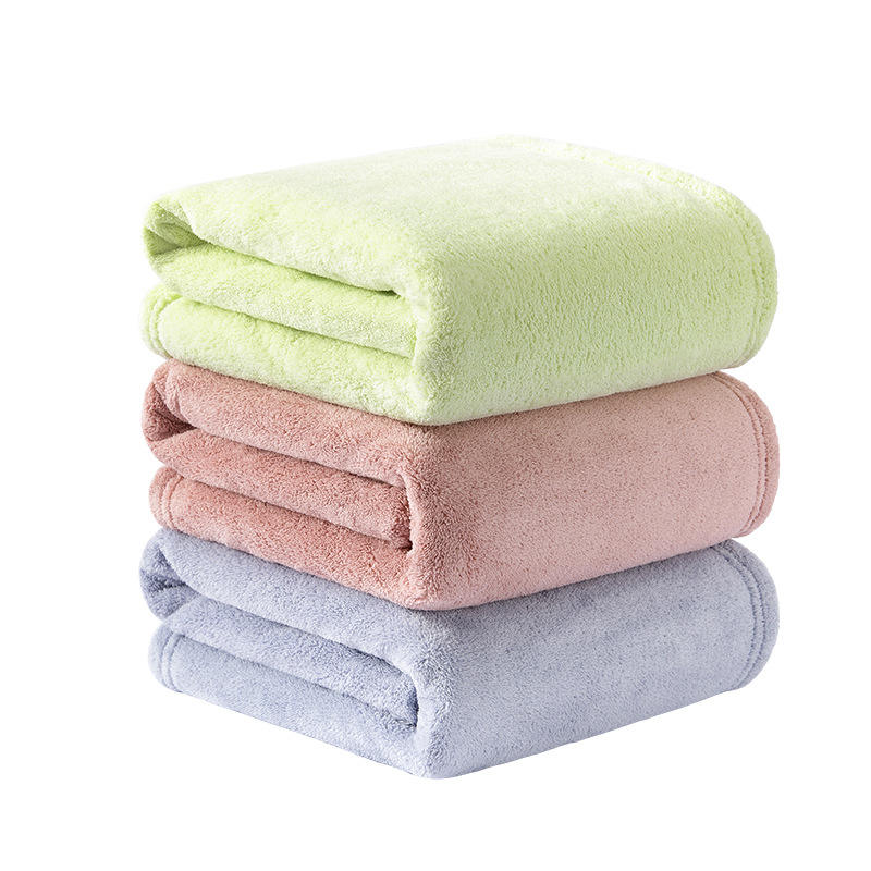 ผ้าเช็ดตัวขนแกะปะการัง 70x140 ซม. หนา สีพื้น ไม่เป็นขุย ซึมซับได้ดี สำหรับใช้ในบ้าน