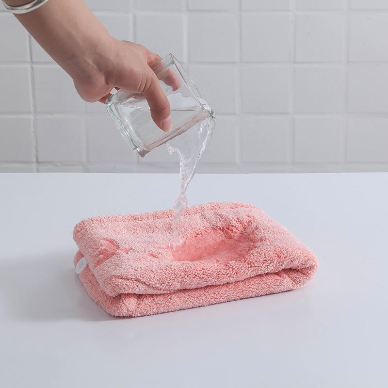 หมวกคลุมผมขนปุยคอรัลฟลีซ ผ้าขนหนูหนานุ่มซึมซับน้ำได้ดี สำหรับผู้หญิง หมวกอาบน้ำแบบติดกระดุม สีเทาอ่อน สีชมพูอ่อน สีแดงเข้ม