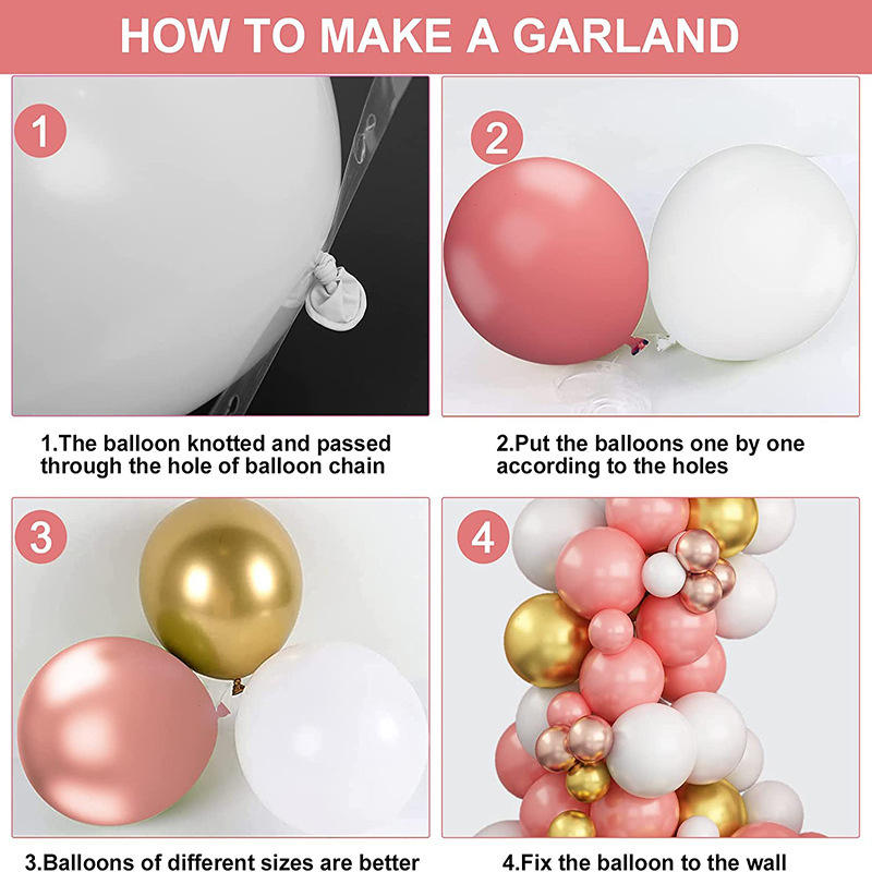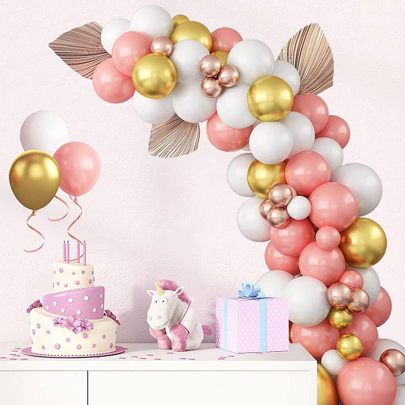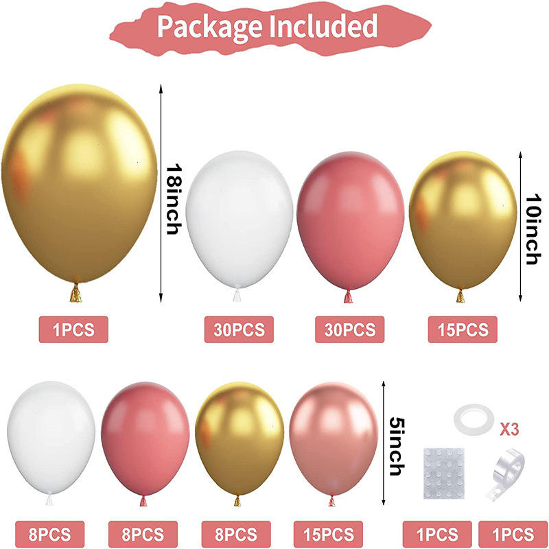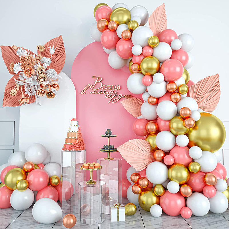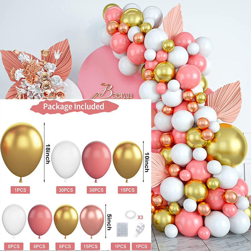 ชุดลูกโป่งสีทองรูปปะการังสีแดงเมทัลลิกชุดพวงลูกโป่งสีทองสำหรับเด็กผู้หญิงวันเกิดเจ้าสาวงานแต่งงานงานปาร์ตี้