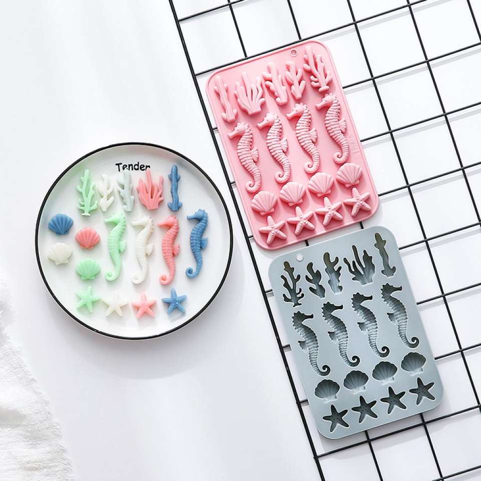 แม่พิมพ์ซิลิโคนรูปปลาทะเล หอย ปลาดาว สำหรับทำขนมเค้ก ช็อกโกแลต