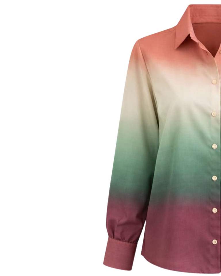 เสื้อเชิ้ตผู้หญิงแขนยาวสีคอรัลไล่เฉดสีเขียวเซจและสีไวน์แดง แบบติดกระดุม สไตล์ลำลองสำหรับใส่ทำงาน ผู้ผลิตเสื้อผ้าแบบ OEM รับผลิตตามสั่ง