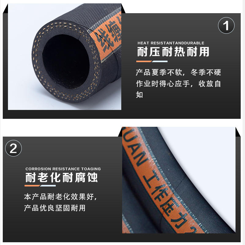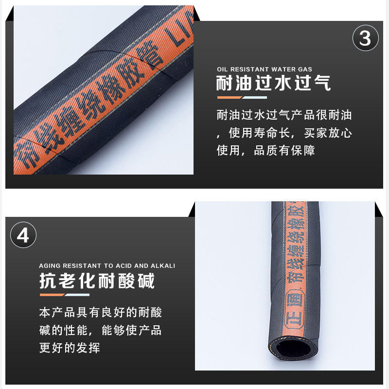 สายยางหุ้มฉนวนผ้าเสริมแรงสีดำ ทนทานต่อการเสื่อมสภาพ ทนกรดด่าง ทนการสึกหรอ สายยางอ่อนตัวแรงดันต่ำ