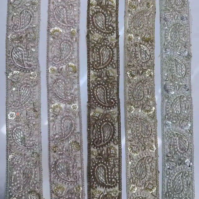 ริบบิ้นปักเลื่อมและมุกประดับขอบลูกไม้สำหรับชุดราตรี-ตกแต่งอย่างหรูหราและโรแมนติกเป็นมิตรกับสิ่งแวดล้อม