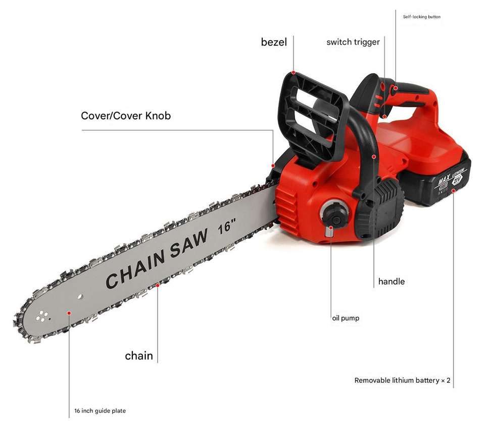 Cordless 40V Lithium Power Chainsaw 16" Inch 2600W Big Power Brushless 2 Battery Working Outdoor Professional Woodwork Chainsaw