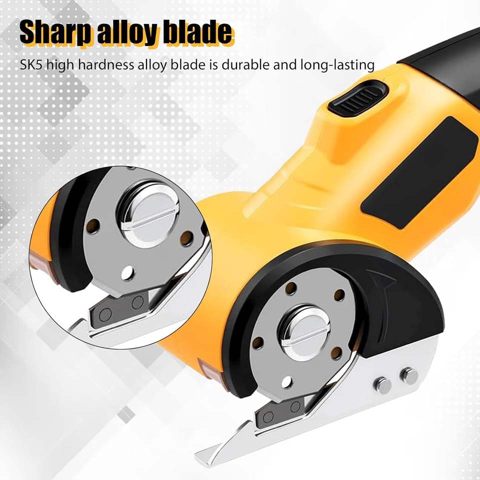 กรรไกรไฟฟ้าไร้สายแบบมือถือ ใบมีดสแตนเลส สำหรับหนัง ผ้าสักหลาด กระดาษแข็ง พร้อมไฟแสดงสถานะแบตเตอรี่ กล่องเก็บ EVA