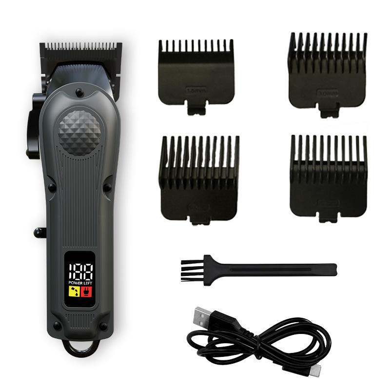 Cordless Electric Hair Clipper With LCD Display Stainless Steel Blade USB Charging For General Use Black And Gray