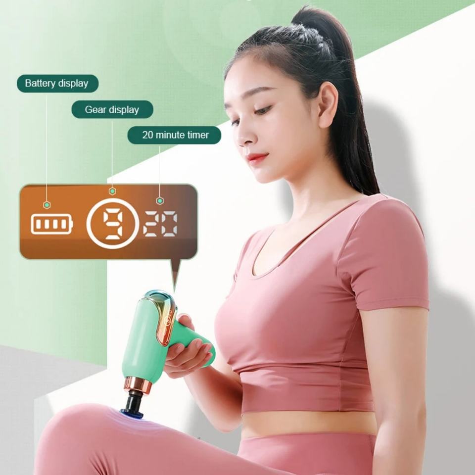ปืนนวดกล้ามเนื้อไร้สายพร้อมมอเตอร์เงียบ 4 หัวนวด ปืนบำบัดแบบพกพาสำหรับการฟื้นฟูร่างกายหลังออกกำลังกาย