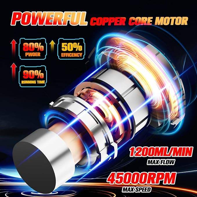 ปืนพ่นสีไร้สายพร้อมแบตเตอรี่ 2 ก้อน 4000mAh, ปืนพ่นสีไฟฟ้าแบบมือถือพร้อมหัวฉีดทองแดง 5 หัว, ถังขนาด 1200 มล.
