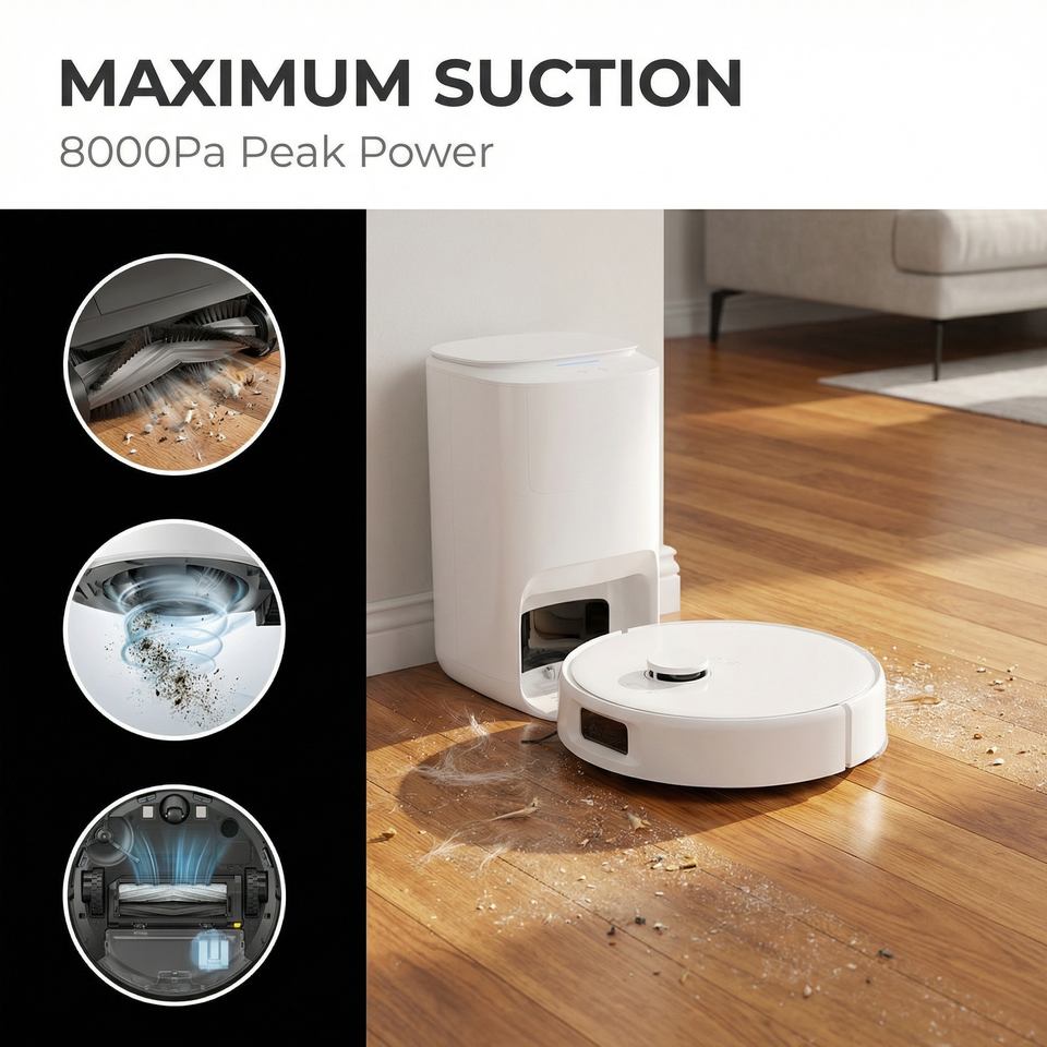 เครื่องดูดฝุ่นไร้สายระบบนำทาง LDS แรงดูด 8000Pa 3 in 1 กวาด ถู ดูดฝุ่นแบบเปียกและแห้ง แบตเตอรี่ 5200mAh หุ่นยนต์ดูดฝุ่น
