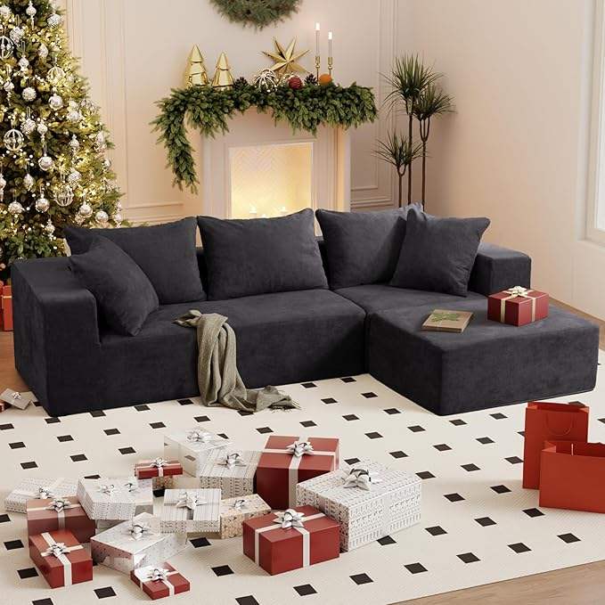โซฟาผ้าลูกฟูกพร้อมหมอน2ใบโซฟา3ที่นั่งขนาดกว้างขวางและนุ่มสบายสำหรับห้องนั่งเล่นที่ทันสมัย