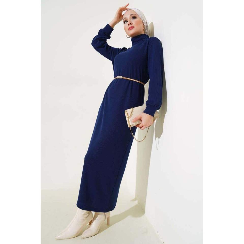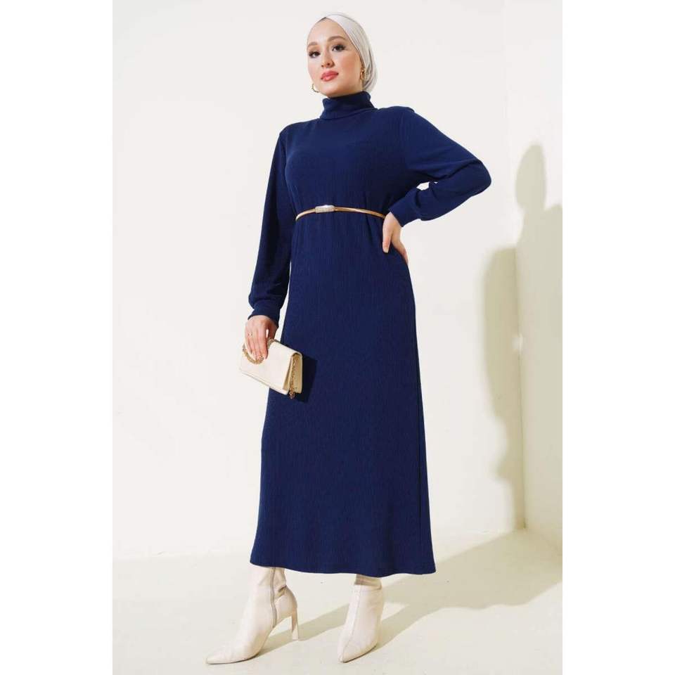 เดรสคอร์ดูรอยคอเต่า สีกรมท่า ผ้า TR ลายเรียบ ไซส์ 40-48