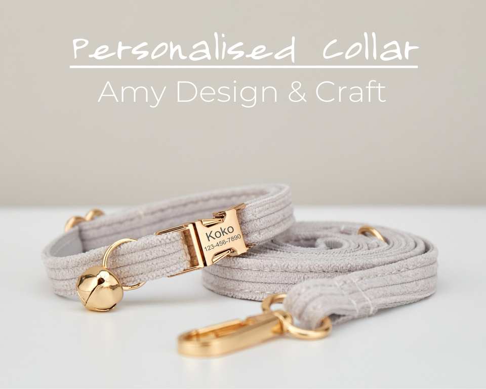 ชุดสายจูงคอร์ดูรอยทำมือพร้อมโบว์ผูกสีเทาอ่อนสำหรับแมวและลูกสุนัข พร้อมกระดิ่งทองและป้ายชื่อแบบกำหนดเอง