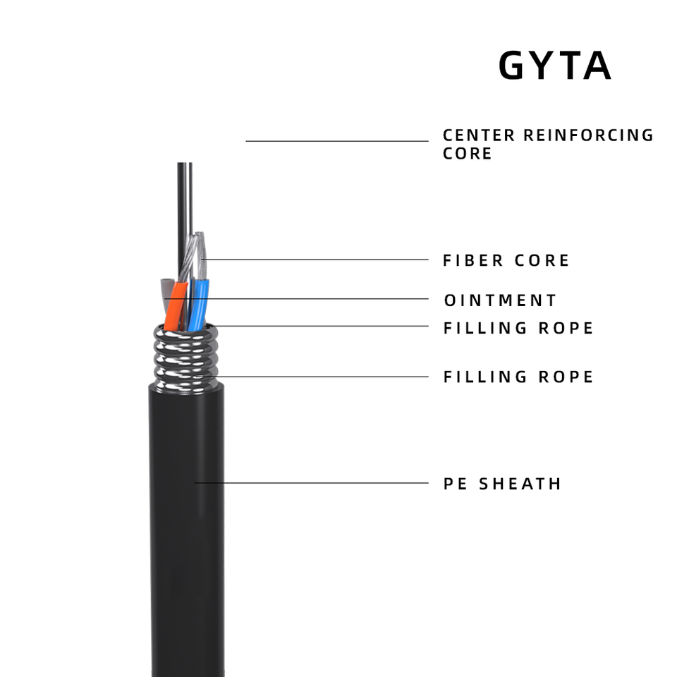 แกนกลางต่อ G652D เดียวมิเตอร์1กม. ใต้ดินขนาดเล็ก GYTA Gyta53เรือดำน้ำลดลงกลางแจ้ง12 24 48มัลติโหมดสายเคเบิลใยแก้วนำแสง