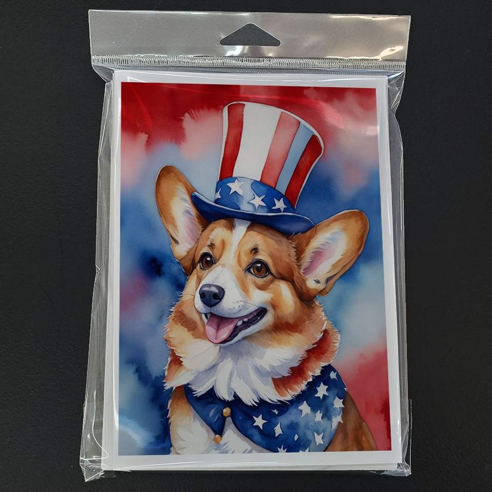 Corgi Patriotic American Whimsical A7 Size 5x7 Blank Note Cards Pack of 8 with Envelopes Greeting Cards