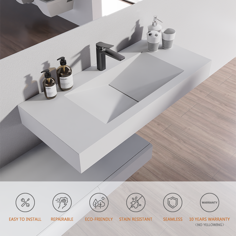 อ่างล้างหน้าห้องน้ำหินเทียม Corians Sanitary Ware แบบแขวนผนัง
