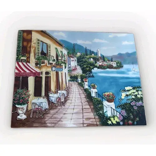 Corinth Villa Terrace Sea View 14 \ "X 11 \" ภาพจิตรกรรมฝาผนังเซรามิคกระเบื้อง backsplash รู้สึกด้านหลัง