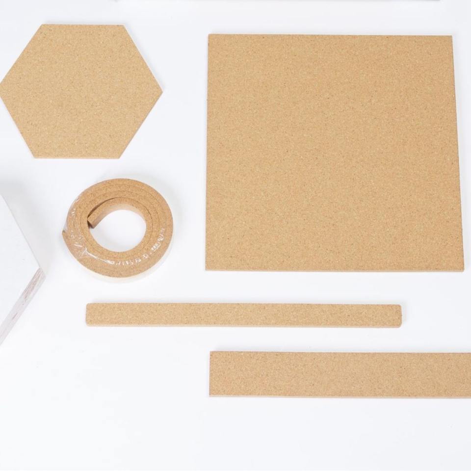 ชุดกระดานไม้ก๊อกรูปทรงสี่เหลี่ยมหกเหลี่ยมแบบมีกาวในตัวสำหรับตกแต่งบ้านสไตล์มินิมอล ขนาด 300x300 มม.