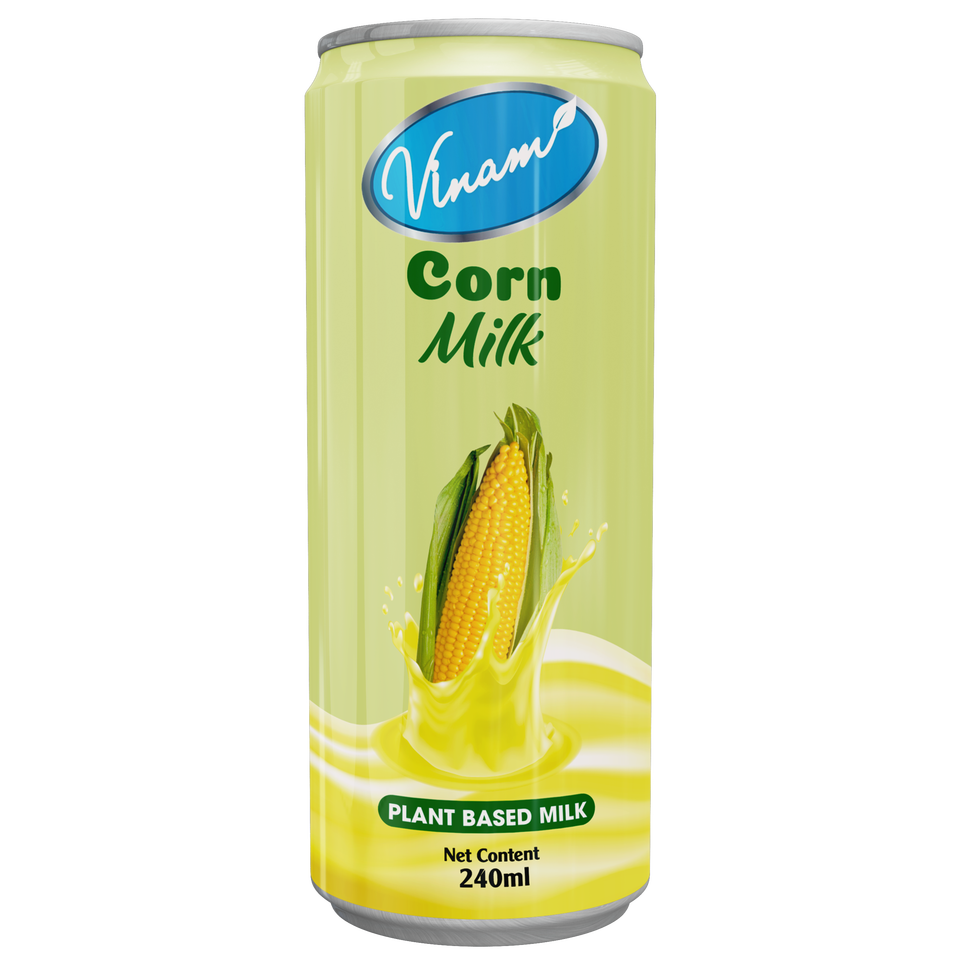 เครื่องดื่มนมข้าวโพด เวียดนาม เครื่องดื่มนมข้าวโพดสด นมข้าวโพดบรรจุกระป๋อง 250 มล./330 มล. รับผลิตแบบ OEM/ODM แบรนด์ส่วนตัว สำหรับขายส่งและส่งออก