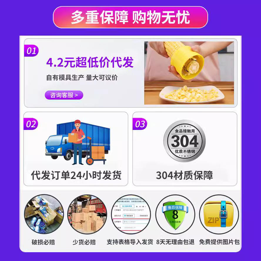 เครื่องปอกเปลือกข้าวโพด 304 สแตนเลสสตีล เครื่องแยกเมล็ดข้าวโพด สีเหลือง อุปกรณ์ครัวที่สะดวกสบาย