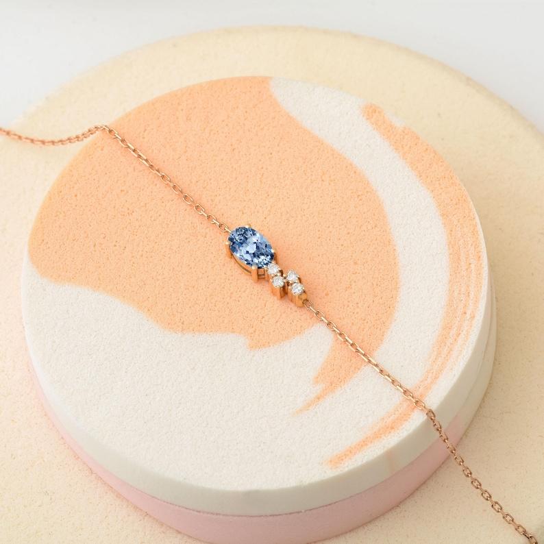 สร้อยข้อมือหรูหราดีไซน์ไพลินสีน้ำเงินประดับด้วยหิน
