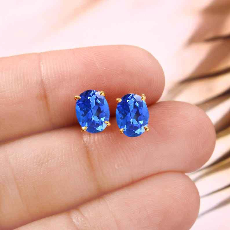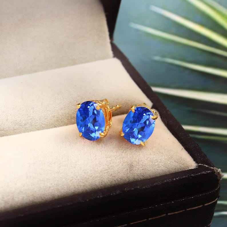 Blue Sapphire Earrings Unique Gemstone 925 Sterling Silver Earrings