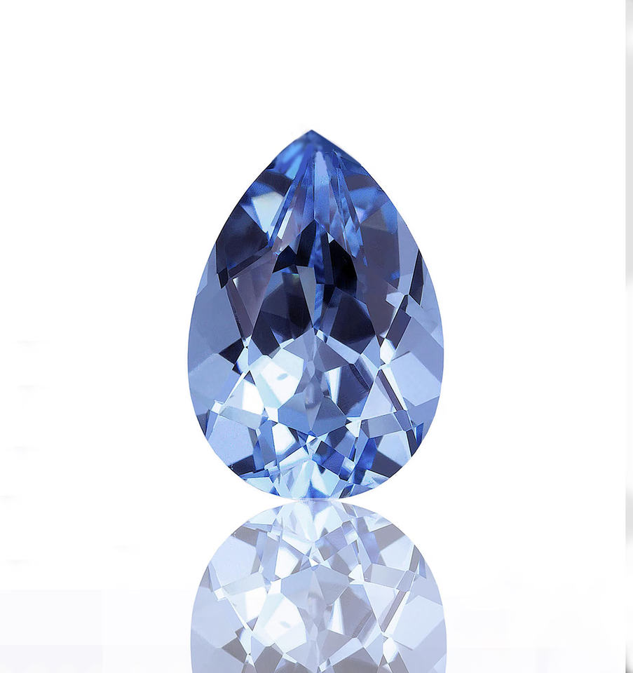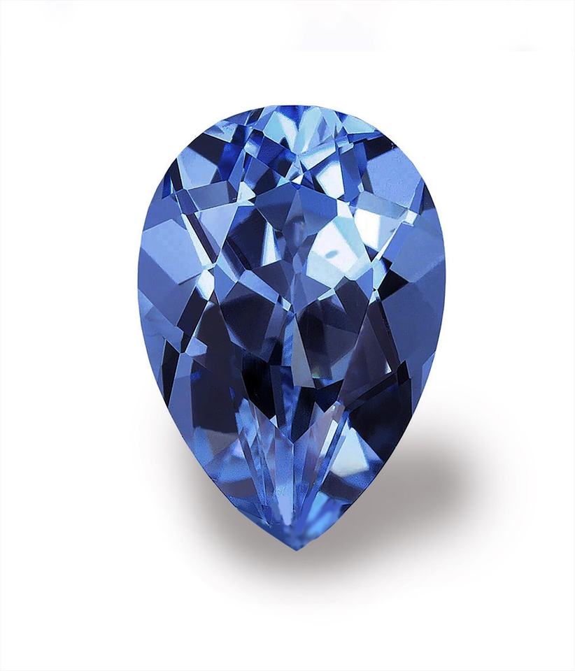 ลูกแพร์สีน้ำเงินไพลินคอร์นฟลาวเวอร์ตัดอัญมณีทนความร้อนพร้อมเอฟเฟกต์การเปลี่ยนสี