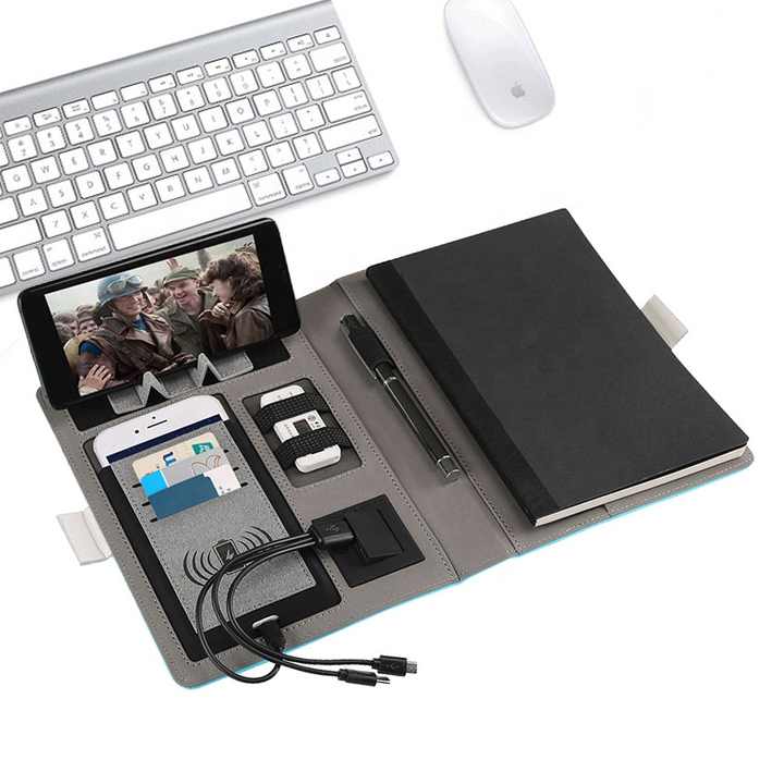 ของขวัญธุรกิจสำหรับองค์กร พาวเวอร์แบงค์ไร้สายขนาด 8000mAh รุ่น A5 พร้อมสมุดโน้ต PU ที่ใส่โทรศัพท์และช่องใส่บัตร