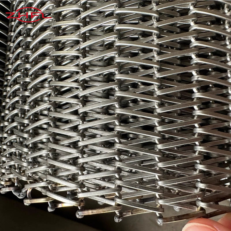 รูปร่าง:สายพานลำเลียงแบบตาข่ายลูกโซ่, ลายข้าวหลามตัด, แบบผ้ากันเปื้อน, สายพานตาข่ายทรงกลม
