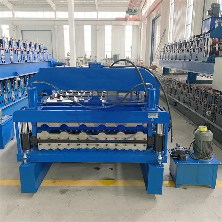 เครื่องขึ้นรูปลอนหลังคาเหล็กสองชั้นแบบม้วน สำหรับกระเบื้องโลหะ ขับเคลื่อนด้วยมอเตอร์ ใช้กับแผ่นเหล็กชุบสังกะสีได้ ใช้งานง่าย