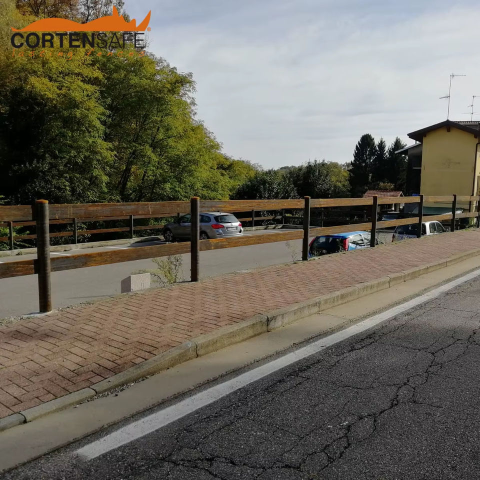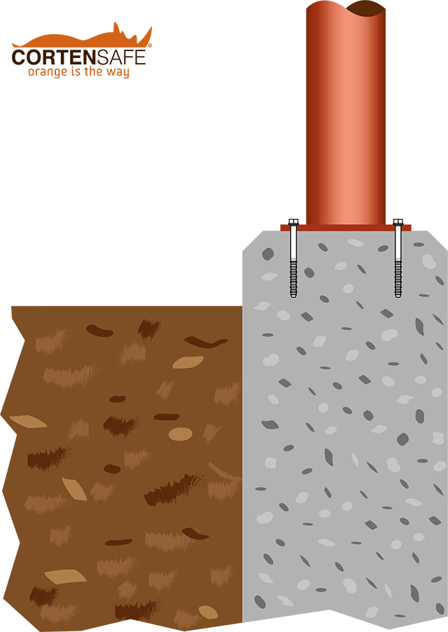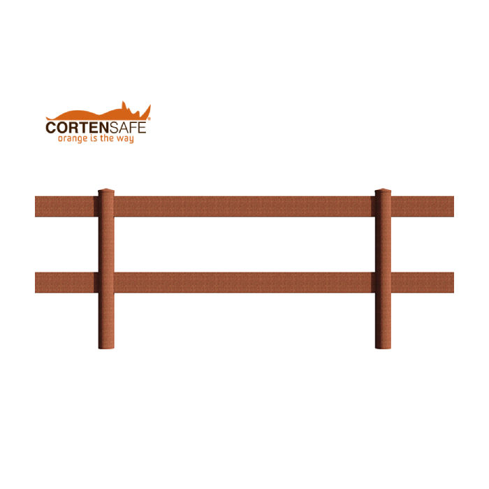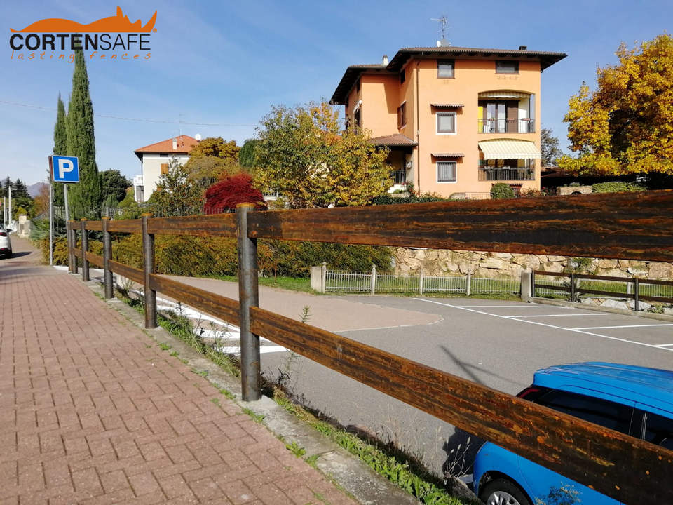 Corten Steel Fence Badia H2C for Gardens and Parks Height 1100 mm Interaxis 2000 mm Welded Base Plate Th. 5 mm Diameter 200 mm