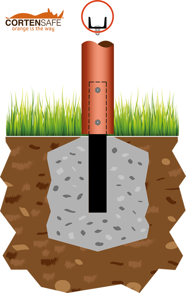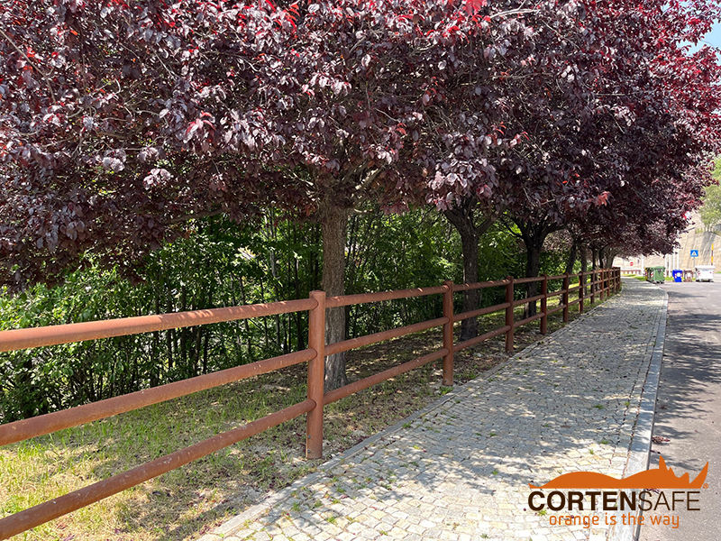 รั้วเหล็กคอร์เทนสำหรับสวนและสวนสาธารณะระบบ H3C brunico ความสูง1100มม. interaxis 2000มม. UNP