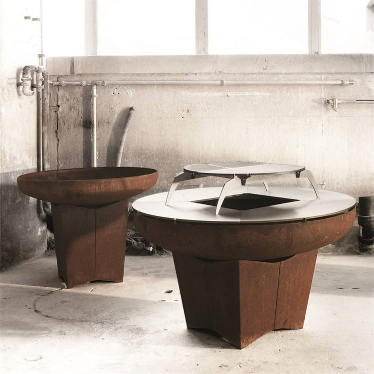 กริลล์เหล็กสำหรับเตาไฟกลางแจ้งใช้ในสวนมีสนิมเหล็กสำหรับเตาถ่านฟืนเชื้อเพลิงปรับได้สำหรับใช้ในบ้าน