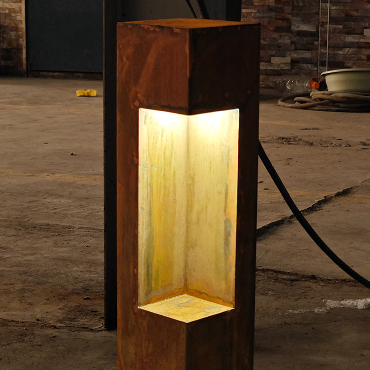โคมไฟสนามเหล็กคอร์เทนสำหรับตกแต่งศิลปะกันน้ำได้อย่างอิสระมีความสง่างามกลางแจ้ง
