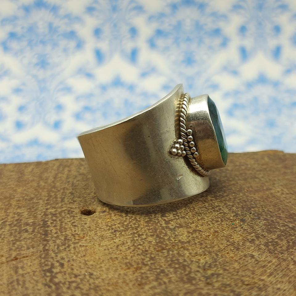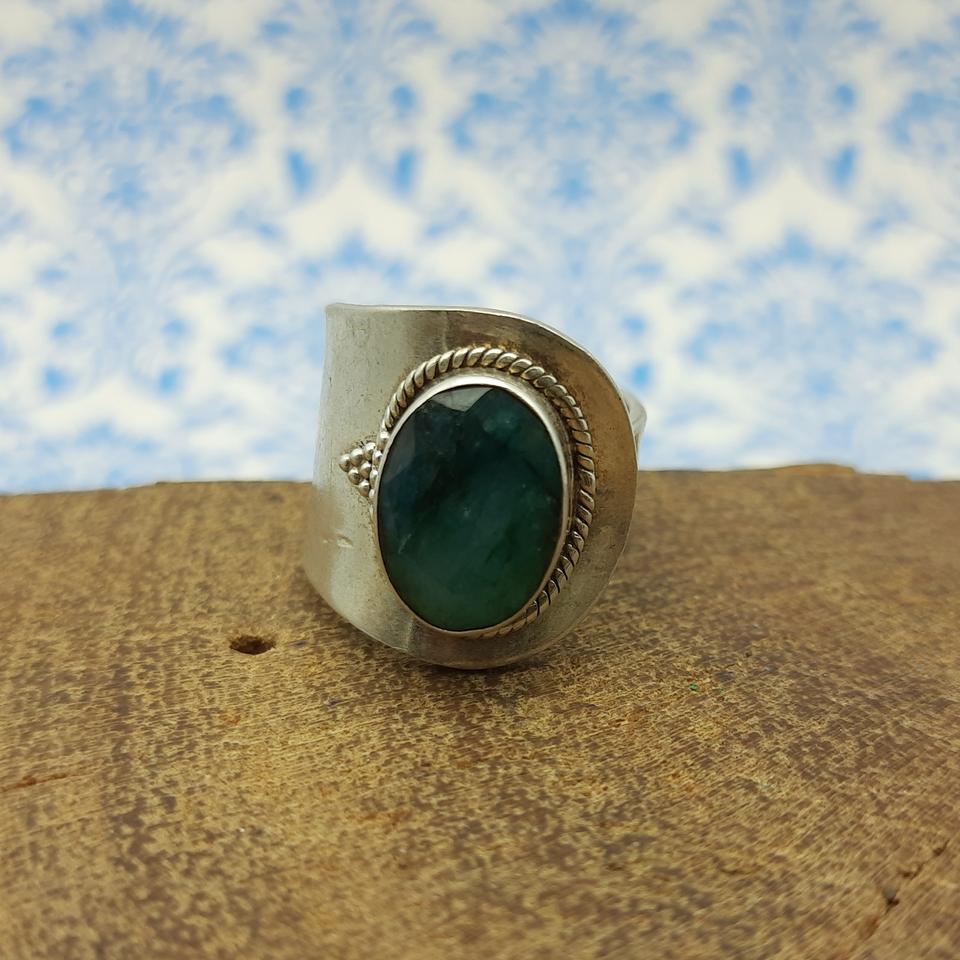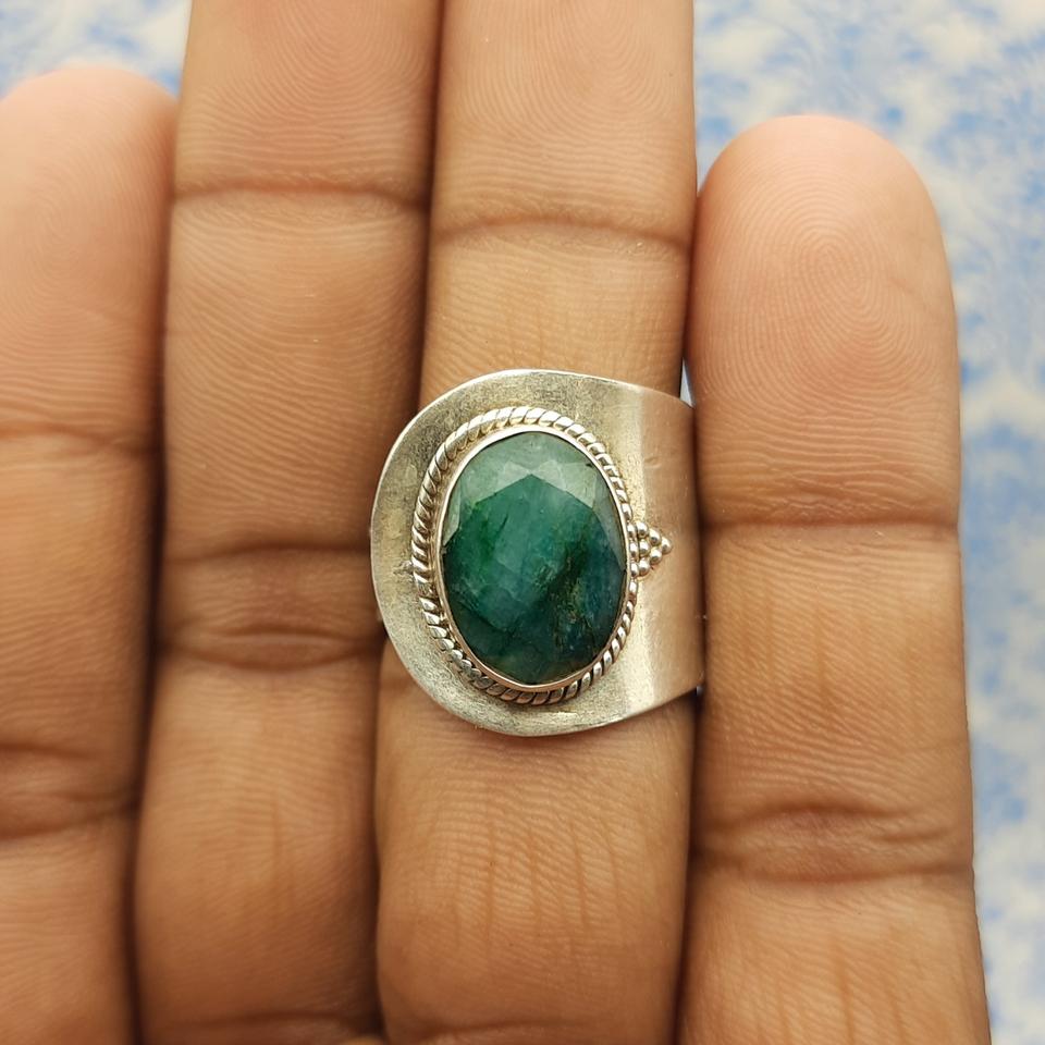 พลอยมรกตคอรันดัมโบฮีเมียนปรับขนาดได้กว้างใช้ได้ทั้งชายและหญิงแหวนเงิน925ออกแบบได้