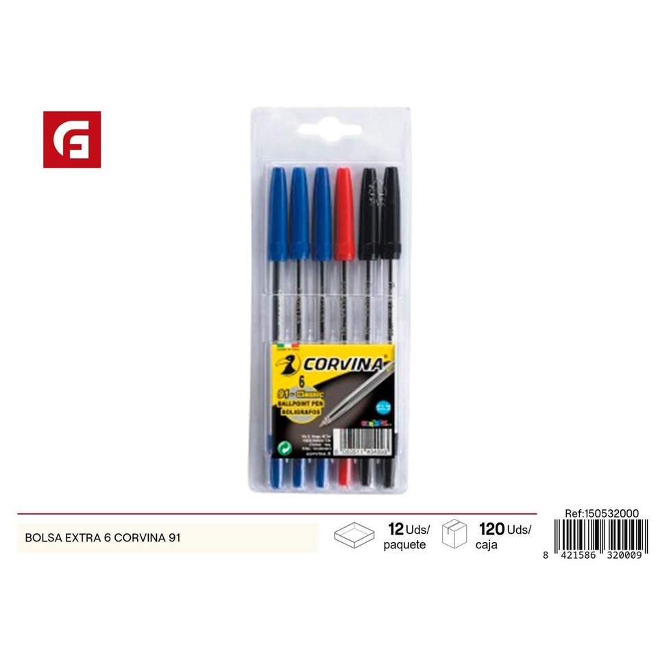 Corvina 91ปากกาลูกลื่นถุงพิเศษพร้อมปากกา6ด้ามอุปกรณ์การเรียน