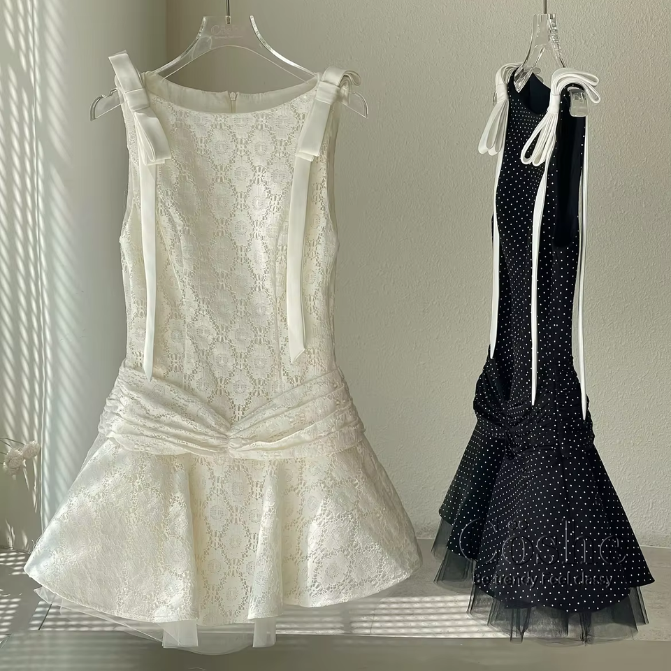 Coshe Betty ชุดมินิเดรสผู้หญิงเอวแต่งระบายเครื่องแต่งกายแนวหวานๆสไตล์คลาสสิกสำหรับออกเดทงานปาร์ตี้