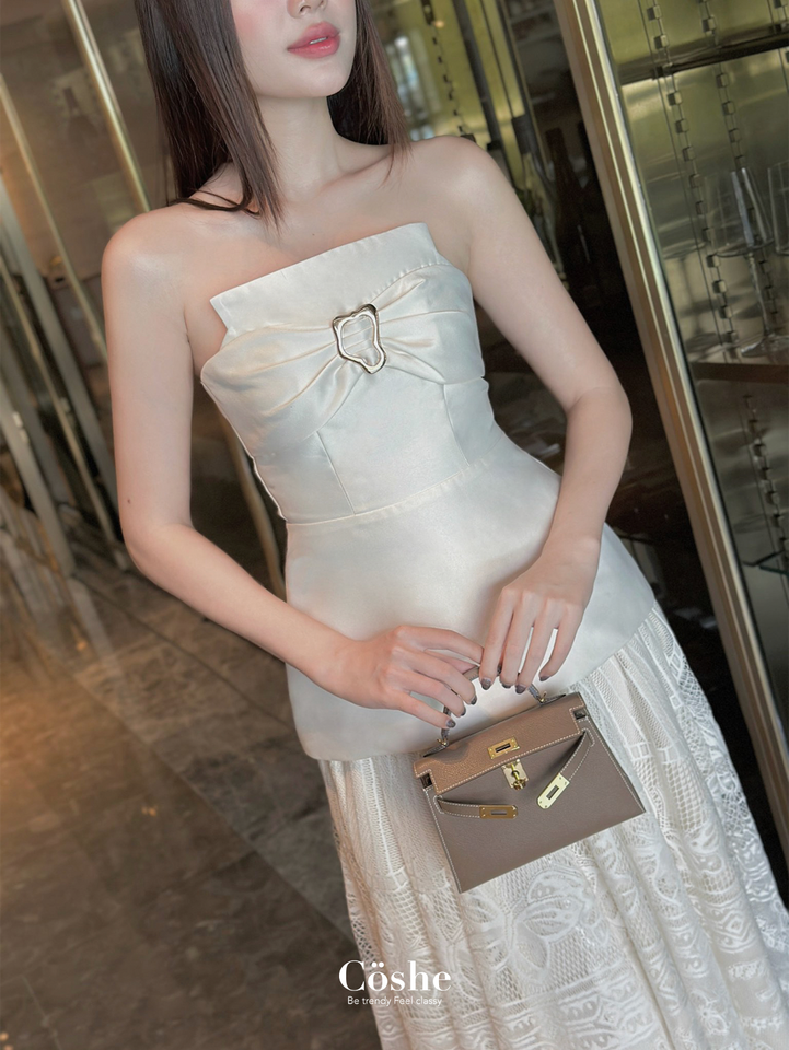 เสื้อเบลาส์ผ้าทาฟต้าลายดอกไม้ทรงเข้ารูป ดีไซน์เกาะอก สำหรับสุภาพสตรี เหมาะสำหรับงานปาร์ตี้ ลำลอง และใส่ได้ทุกวัน ผลิตในเวียดนาม