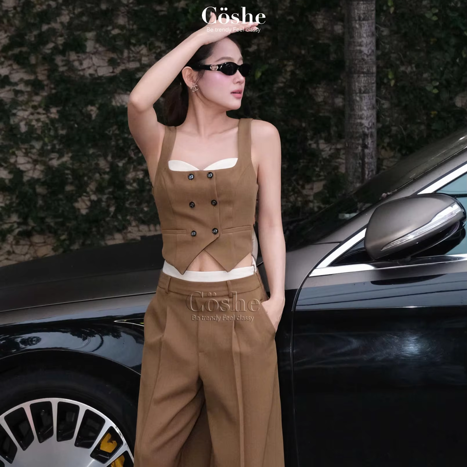Coshe ชุดสองชิ้นหรูหราสง่างามเหมาะสำหรับผู้หญิงสวมใส่ในชีวิตประจำวันสไตล์สำนักงานแฟชั่นสตรีทลุคลำลองสำหรับผู้หญิง
