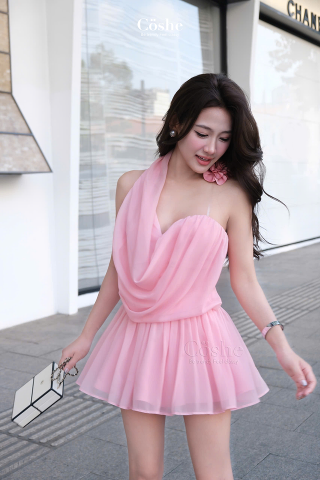 Fashion Element:Backless, Floral Print, cut-out, Halter&Lace up